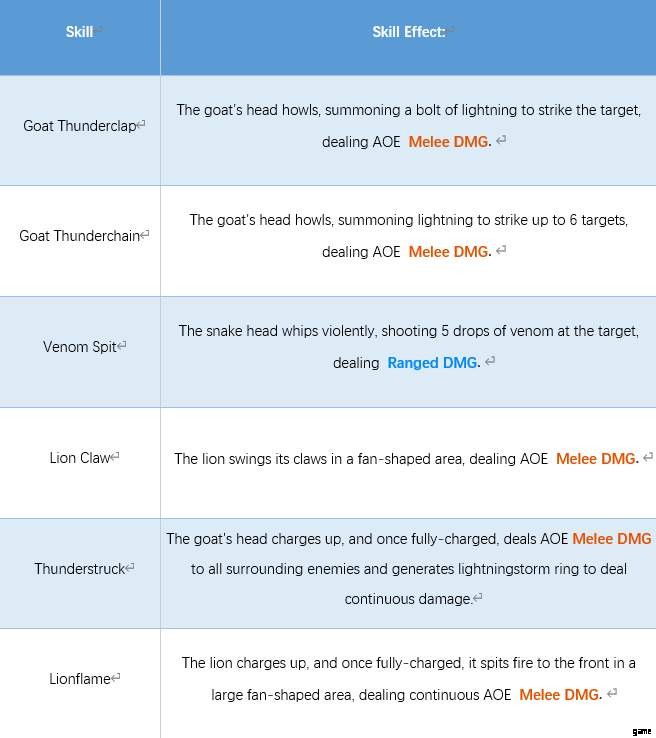 キマイラのスキルは主に広域近接ダメージなので、トーテムチャレンジに向いていますが、柔軟性に欠け、PvPペットとしては不向きです。そのため、PvE ペットにして、装備とスキルに近接ダメージ増加、遠距離ダメージ増加、近接ダメージ軽減、遠距離ダメージ軽減、防御ブレイク、クリティカル、クリティカルダメージを選択するのが最善です。