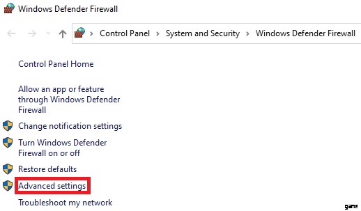 Windows ファイアウォールを開き、[詳細設定] に移動します。