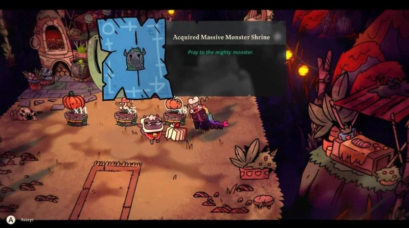 Return to your Cult and build the statue, and you’ll find you can interact and pray at the Mad Monster Statue, which will unlock the Mad Monster Follower Skin for you to use.