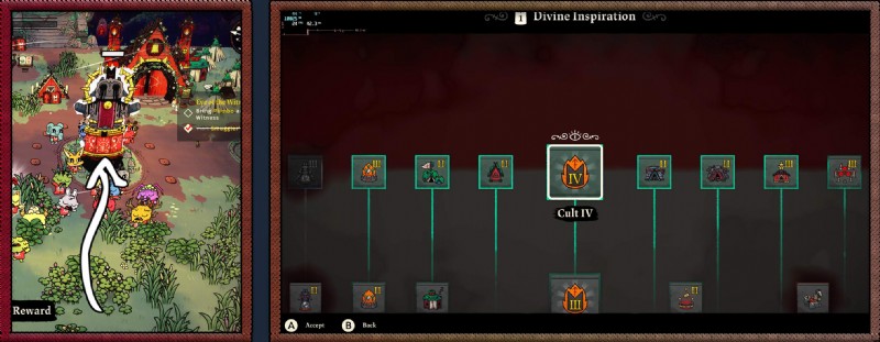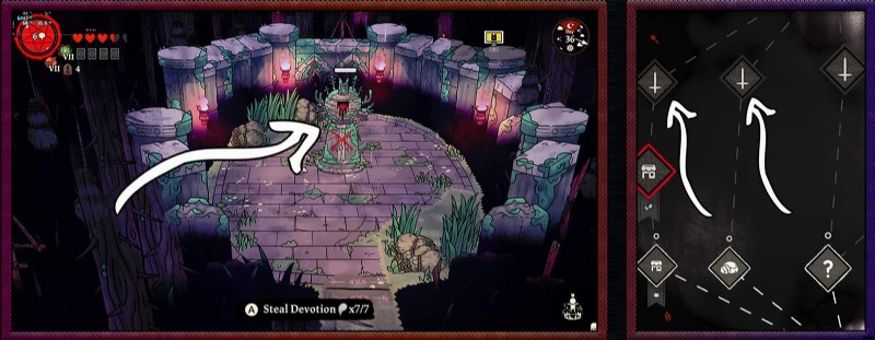 教義はチャペルで作成されます。シールは3パーツ集める必要があります。シールは、アリーナのチェスト、サイドクエストの完了、または各フォロワーの忠誠度の上昇後に見つけることができます。フォロワーの上に赤いアイコンが表示され、レベルアップできることを示します。レベルを上げることができます: