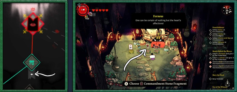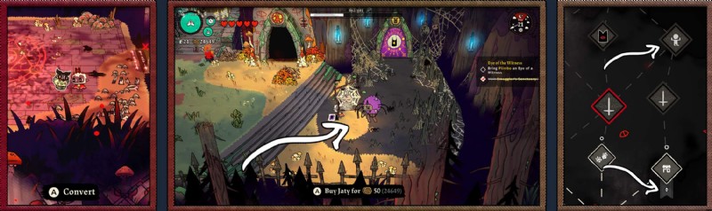 フォロワーはミニボスを倒すことで見つけることができます。アリーナを通過すると、パスの選択肢があります。このマップ上のフォロワーは、対応するアイコンで示されます。フォロワーを保存するためのアリーナと、フォロワーを通貨で購入できる中立エリアの両方があります。ストーリーラインの第 4 章では、ゲートにクモがあり、そこからフォロワーを購入できます。ゲームを完了するには、フォロワーが 20 人必要です。