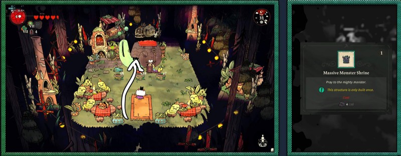 - イモムシは食べ物を売り、イモムシの後ろにはカタツムリがいて、イモムシがあなたを攻撃するまでカタツムリをたたきます。イモムシを倒すと飾りがもらえます。この装飾を子羊のカルトに配置して使用してください。