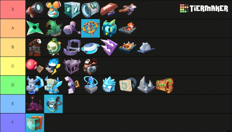 - C: これらのトラップは、特殊な地形やトラップ コンボでうまく機能し、適切なシーンで使用する必要がありますが、広く適用できるわけではありません。最後のトラップ ゴールド スナッチャーは追加のゴールドを提供できるので、レベル C に配置します。