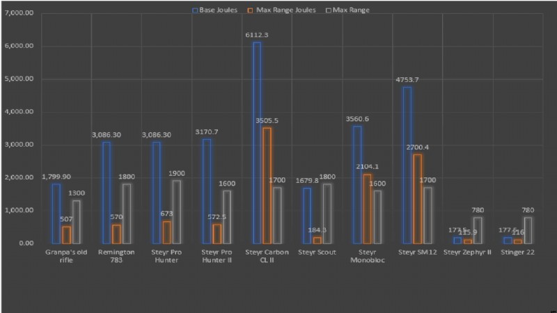 これは、ライフルの最大ジュール量を示すグラフです。