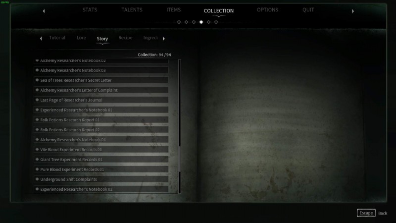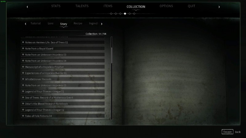 - コレクション内のすべてのエントリを収集します。 Plague Doctor、Good Listener、Memory Weaver の実績を達成することで、この購入を獲得できるはずです。