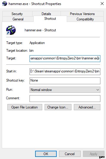 D:\Steam\steamapps\common\EntropyZero2\bin\hammer.exe -game "D:\Steam\steamapps\common\EntropyZero2\entropyzero2"