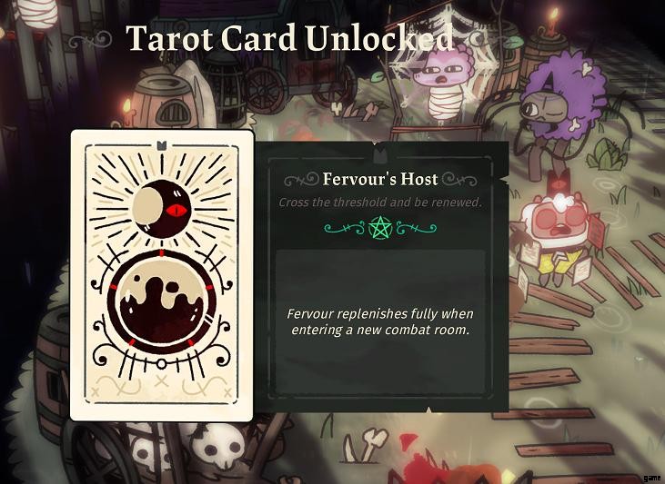 Fervour's Host は、蜘蛛のキャラクターである Helob から得られる 36 番目のタロット カードです。このカードは、操作方法に関するガイダンスがほとんどまたはまったくないため、おそらく最も入手が難しいカードの 1 つです。