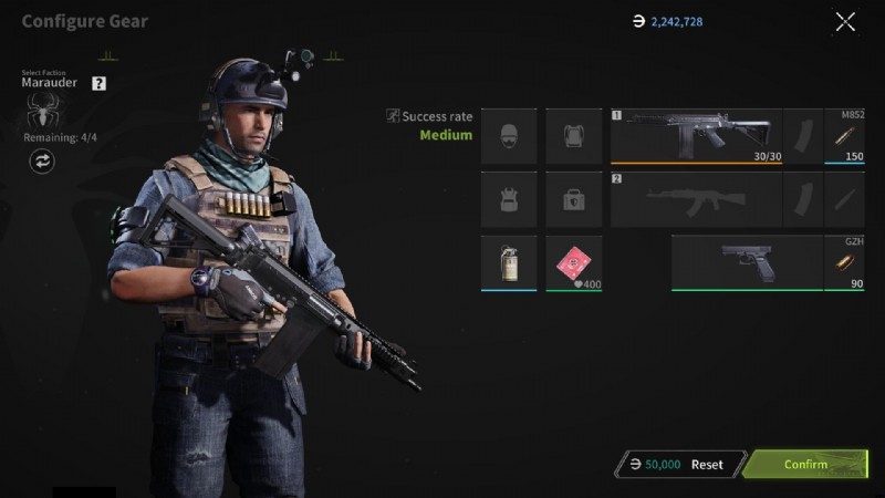 お金を払って、現在の略奪者を新しいキットを持つ新しい略奪者に置き換えることができます。 (リセット、右下隅)