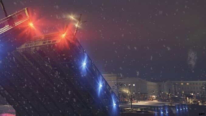 警官がギャングに発砲したとき。最初の爆発の後、左側にある 2 つの交差点を通過します。