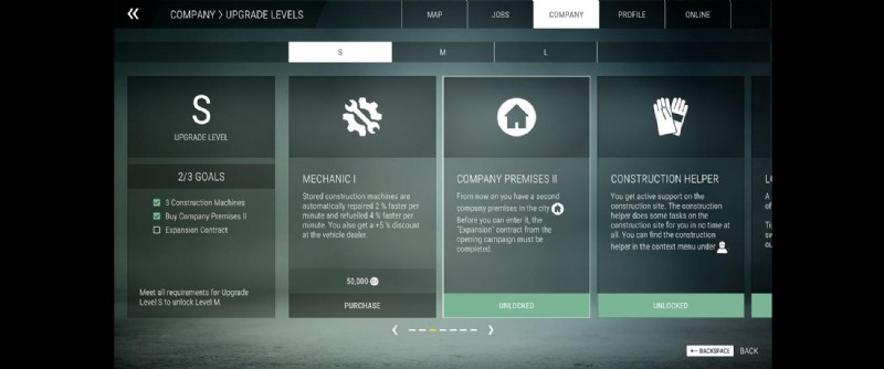 100,000 クレジット以下で車両を 1 台購入してから、会社のアップグレード メニューで 2 番目の会社施設を購入してください。