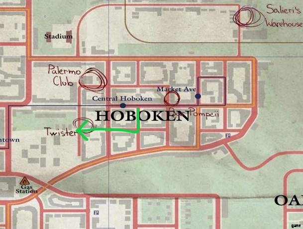 最初の角を右折し、小さな駐車場に着くまで直進します。ツイスター シネマに通じる右側に歩行者専用の小さな路地があります。その路地を通り抜け、端にあるいくつかの階段を慎重にジャンプします。モレロのギャングは、しばしばジャンプをしません。彼らの車が横向きに調整されていれば、ミッションは簡単です.