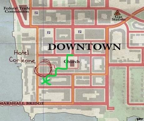 教会から脱出する場合は、以下のルートをたどってください。交差点で車を降りて、警察が追跡をやめるのを待ちます。非常に狭い路地を通過する必要があります。