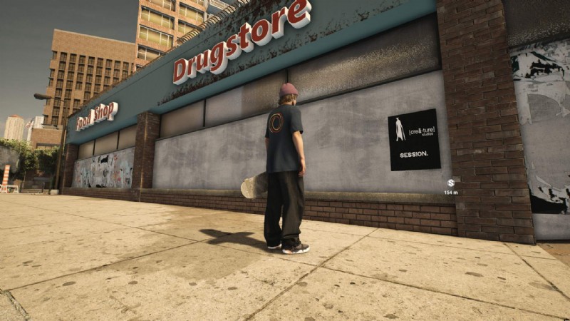 NYC/Madison Park でスポーンし、Food Store/Drug Store を見つけます。ポスターはドラッグストアの看板の下の壁にあります.