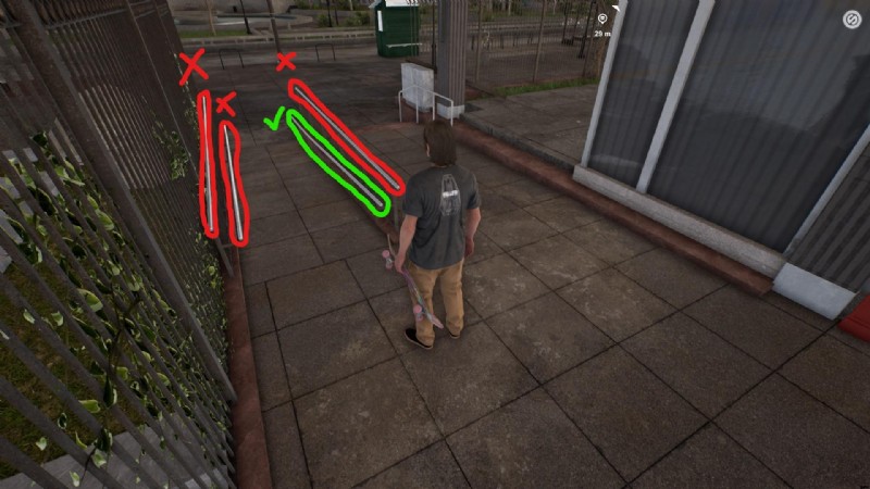 これらのトリックは、この手すりで行われた場合にのみ登録されます。他の 3 つの手すりでは、トリックが記録されません。