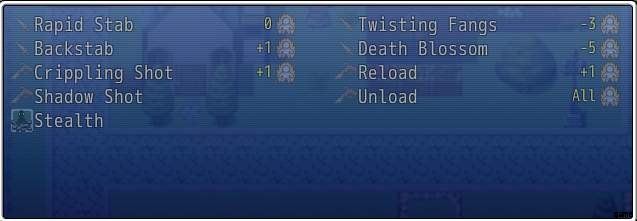 リックが装備している武器によって使用できるスキルが変化します。上の最初のスクリーンショットは短剣とピストルを装備したものを示し、2 番目のスクリーンショットはツールキットを装備したものを示しています。