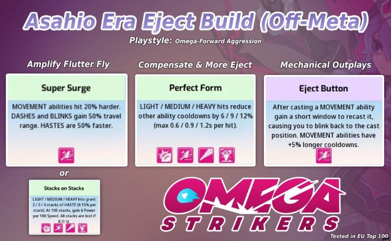 After the patch on 10/06 this build has become more viable due to the removed CDR increase on Eject Button and increased CDR on Perfect Form, I believe Super Surge is now exchangeable for Stacks on Stacks.