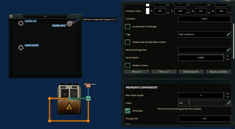 このメモリ コンポーネントは単純に 100 の値を格納します (この値を自分で設定し、画像を調べて、カーソルの位置を確認する必要があります)。その出力を Subtractor コンポーネント input1 に運びます。