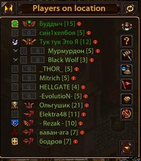 - リスト その場所のプレイヤー、アドバイザー、モデレーター、ディーラー、クラン、フレンド、ブラックリストのリストを表示します。
