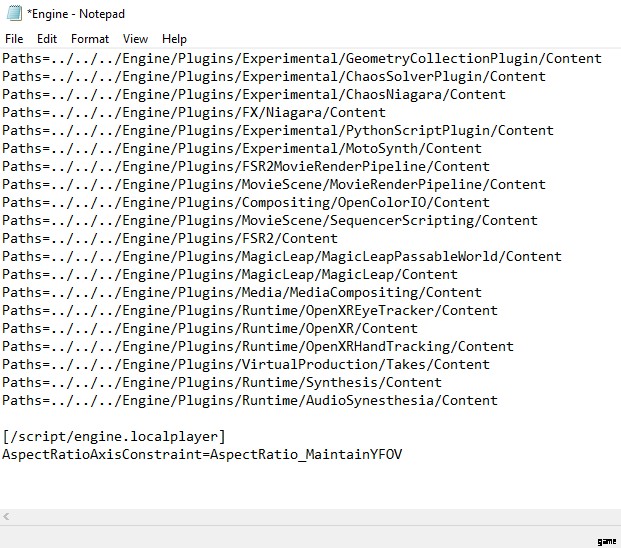 そこから Engine.ini ファイルを開きます。 [Core.System] の下にリストがありますが、これを無視して、ファイルの一番下に次の新しい行を追加します。