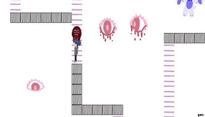 部屋に入ったら、ピンクのうさぎの仮面を操作してください。