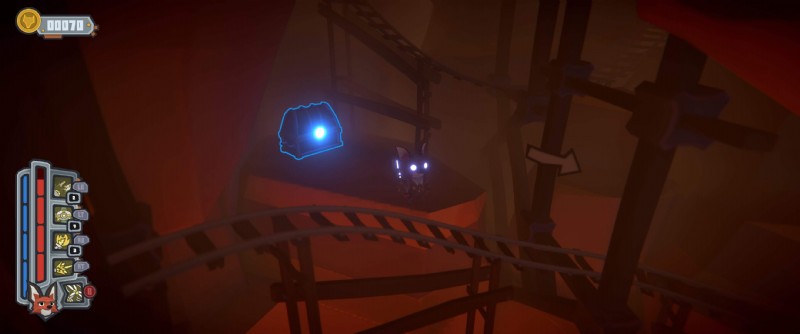 - 左:エレベータを起動するためのバッテリーを入手する場所に近い溶岩地帯。画面の下部に移動してトラックにジャンプし、トラックをたどってこの胸にたどり着きます