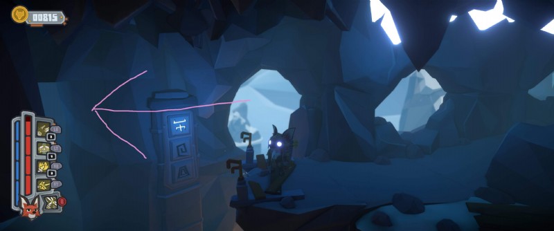 - 右:ジェム 2 に向かうルート。最初に洞窟のハンドルを有効にする必要があります