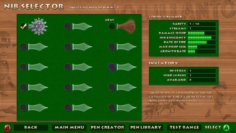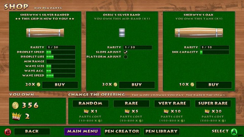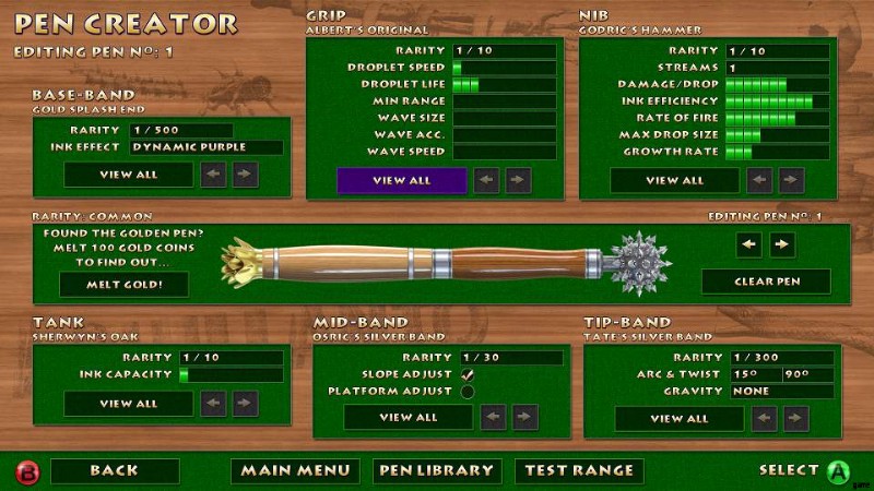 それぞれの[左/右]コントロールを使用してインベントリで利用可能なさまざまなパーツを選択し、それぞれが新しい武器に貢献する特性に注意して、ペンの作成を開始します: