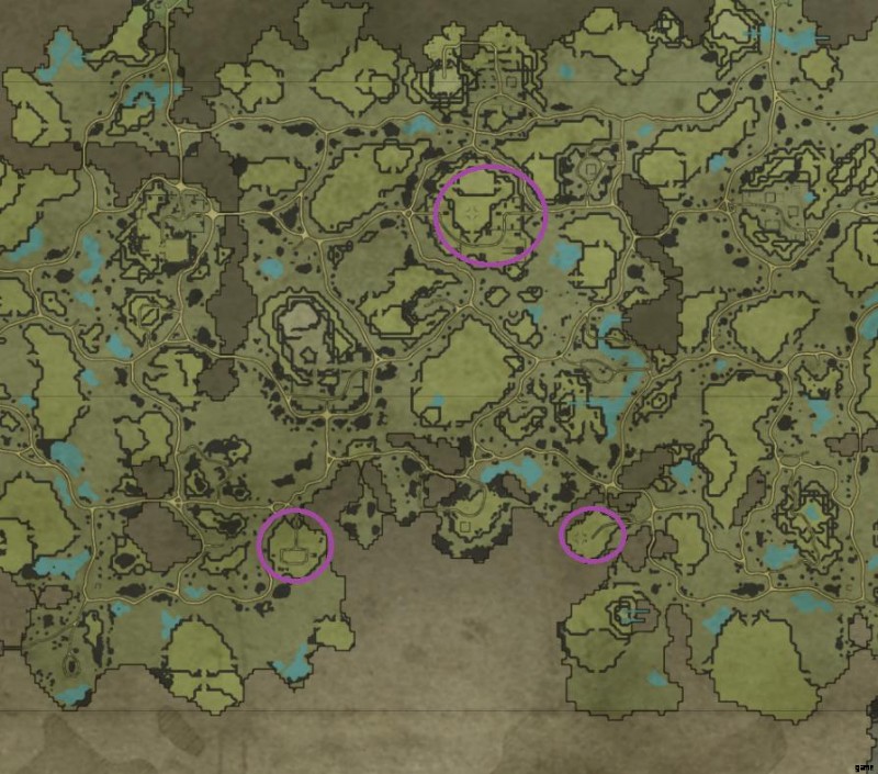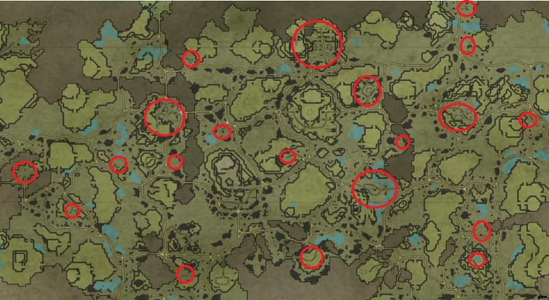 このスクリーンショットでは、キャンプ、要塞、盗賊の武器庫、野営地など、すべての盗賊のエリアを見ることができます。
