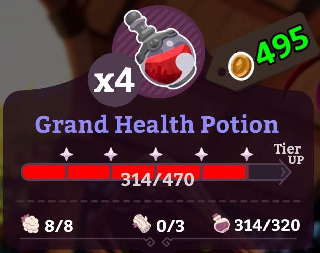 私たちは、最大 320 マジミンのカドロンでスーパー ポーションを作成しています。これは、バランス バフのない低スターのグランド ヘルス ポーションにはギリギリです。