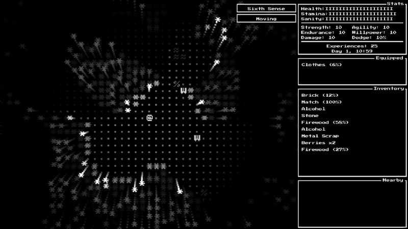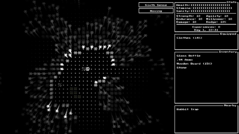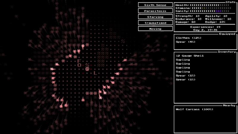 次に、正気があります。ゲームでの主な正気喪失は、外にいることによる恐怖とオオカミの心臓を食べることによるトラウマです。