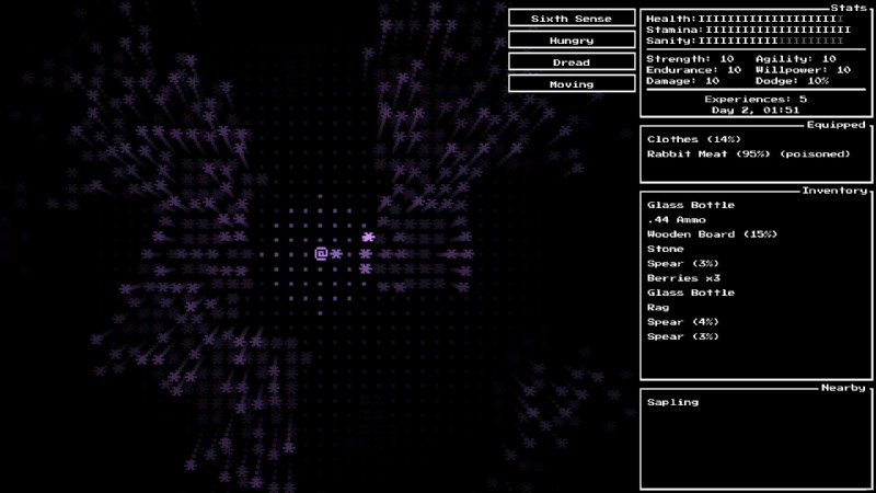ガラス瓶は標準ではないため、水は少しトリッキーですが、もしあれば素晴らしいです.何をするにしても、常に汚れた水を飲まないようにしてください。それから何らかの有害な影響を受けると、ゲームが終了する可能性があります.