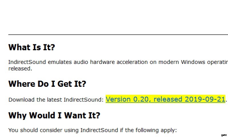 <オール>IndirectSound 自体をダウンロードする前に、マシンが Windows 8 以降を実行している場合は、マシンに Visual Studio 2010 (x86) 再頒布可能パッケージがインストールされていることを確認する必要があります。現在、このリンクから見つけてダウンロードできます。