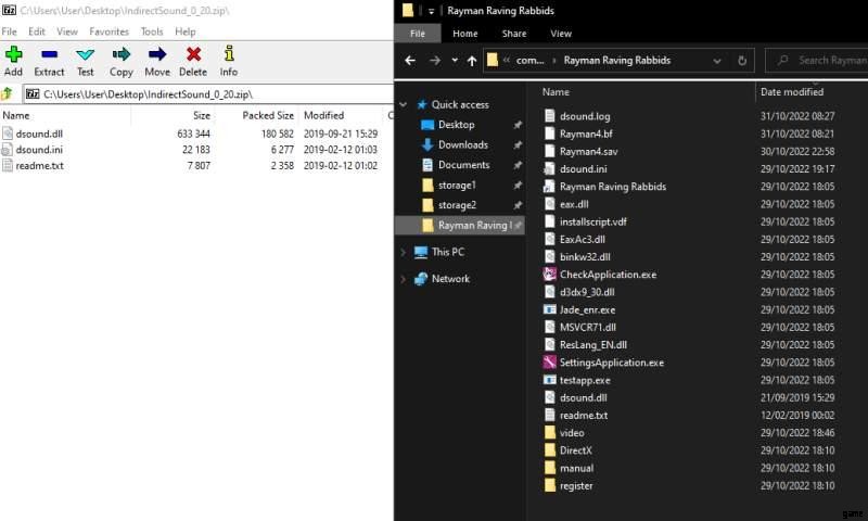 次に、7zip や Winrar などのプログラムを使用して、IndirectSound.zip ファイルをダブルクリックで開き、その内容をゲーム フォルダーに抽出します。これは、好みのファイル アーカイバを開いて Ctrl+A を押し、強調表示されたコンテンツをゲーム フォルダにドラッグするだけで実行できます。
