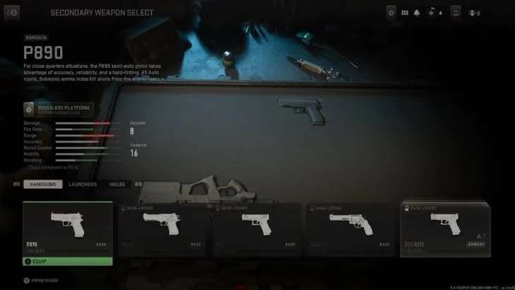 すべてのピストル (P890 を除く) は、プラチナと多原子について同じ要件があります