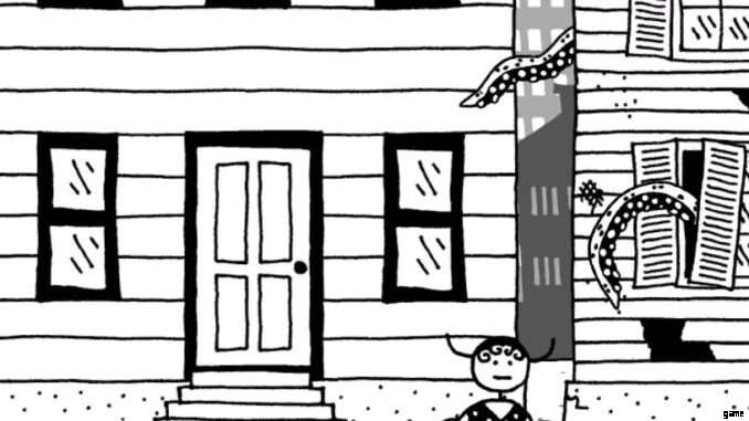 「New Game」を選択するとすぐに、顔に新聞紙を貼り付けたキャラクターが表示されます。左右に少し移動でき、右に移動するとメインメニューに戻るオプションが表示されます。また、通りに出て車にぶつかってすぐにゲームオーバーになることもあります.あなたが前に進む唯一の道は、ドアを通ってダイナーに入る方法です。