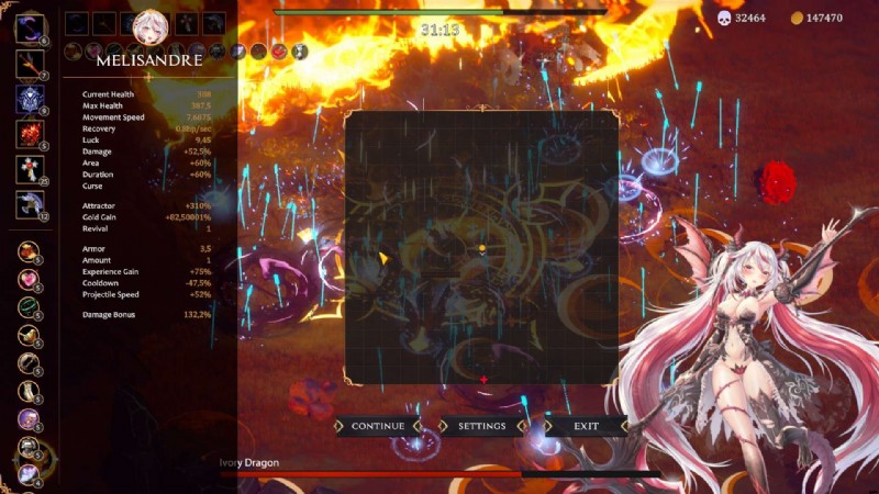 - 常に歩き続けると、Rapier Evo 2 が画面上のすべての胸をノンストップで細断します。緑色の球体にも注意してください。マップに残っているすべてのゴールド/Exp を収集するには、約 29.30 分の間に少なくとも 1 つを保存する必要があります。