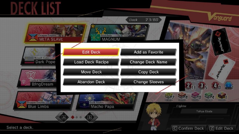 - ロードデッキのレシピ – CPU またはキャラクター DLC から既にアンロックしたデッキ ビルドをロードします。