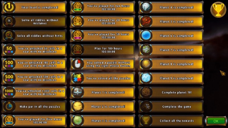 合計プレイ時間が 99:59:55 で、すべてのパズル (最後のパズルを除く) が完全に解決されたセーブ ファイルを作成しました。