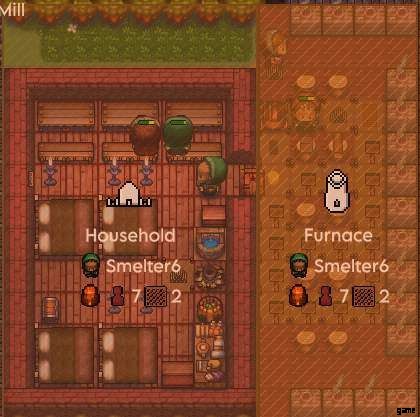 精錬業者は、別の職業 (鉱夫) からのリソースを必要とする中間生産職業であり、最終製品は別の職業 (鍛冶屋/コインメーカー/アーティスト/宝石職人) によって必要とされます