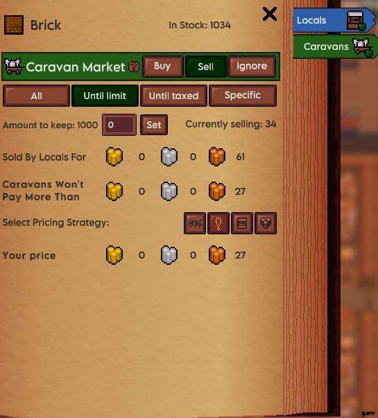 Setting up a min sell for bricks allows some to still remain in town until you are done upgrading everything to your tastes after than every brick you make can be exported.