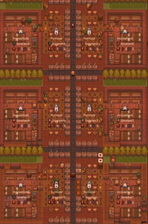 If you are going to use multiple Smelters, and you should, make sure to only have 1 Smelter family producing Ingots and the others just Ovens no Bloomeries. Otherwise they will attempt to compete to buy Ore/Coal driving prices up. You should expect around 3-5g gold per season per smelter family that is full time “Cooking” Bricks depending on their size. In my 800 pop map I used 17 Smelter families, which was producing around 120g a season, or 20-25k bricks.