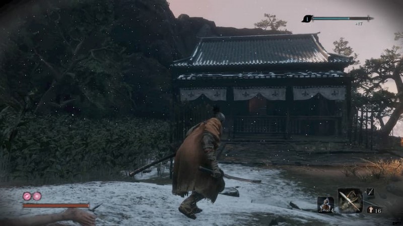 ただし、これら 2 つのガードの本当の目的は、それらを排除することです。そのうちの 1 人がゲートハウスの鍵をドロップし、Sekiro が所有する建物にアクセスできるようになります。 の装填された槍。