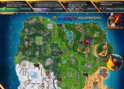 Fortnite シーズン 8 ウィーク 5 チャレンジ リストとチート シートには、その週に完了する必要があるチャレンジの解決策と回答がすべて含まれています。宝物とアイテムの場所への地図、およびそれらすべてをできるだけ早く完了するためのヒントがあります! 今週は、スコープ付きの武器でダメージを与え、Paradise Palms または Shifty Shafts でチェストを検索し、Happy Hamlet でレース トラックを 1 周完走し、Bouncy Ball のおもちゃで 1 回の投げで 15 回バウンドし、さまざまなアイテムでシールドを獲得し、同じ試合で火山の通気孔、ジップライ