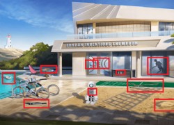パラダイス ミステリー チャプター 3 ウォークスルー 遺体が明らかになると、事件は複雑になります。事件に巻き込まれたすべてのキャラクターをトラブルに巻き込みます。今、誰もがケイトが謎を解き、トラブルからすべてを取り除くことを望んでいます.第 3 章では、ジョーダン インベンション ショールームに移動します。 新しい挑戦があなたを待っています。事件を深く調査し、隠されたオブジェクトをタップして、それらを利用してトリッキーなパズルを解決してください。 ウォークスルー 自転車の近くにポンプがあり、それを集める必要があります。 テニスネットの近くにシャッフルボードのスティックがあります .