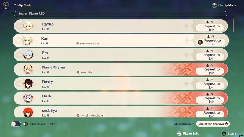 このモードがアクティブになると、フレンドをゲームに参加させる方法、ゲームに直接参加できるかどうか、または招待する必要があるかどうかのいくつかのオプションが表示されます。まだゲームに慣れていない場合は、ID で友達を検索するオプションもあります。ただし、参加するにはすべてのフレンドがアドベンチャー ランク 16 である必要があります。