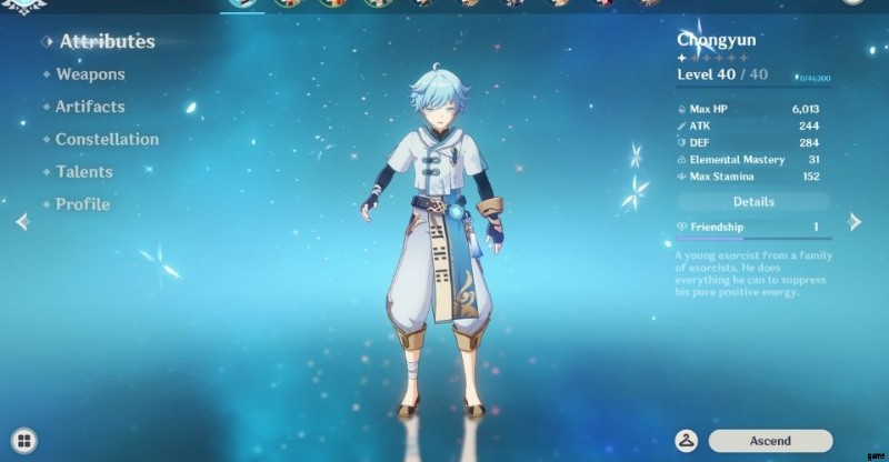 キャラクターが可能な最大レベルに達した場合、さらにレベルアップするには昇格する必要があります。原神インパクトにはキャラクターごとに6つのアセンションステージがあり、各ステージには異なる素材が必要です.チョンユンの昇天の各段階に必要な素材は次のとおりです。
