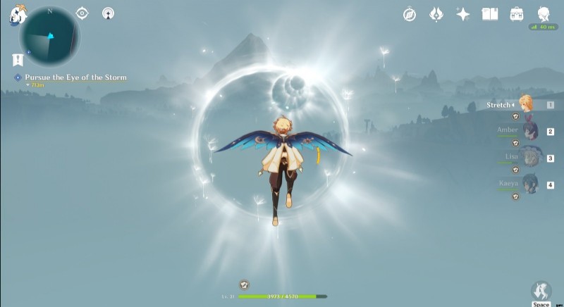 見つかったら、アネモ スキルを使用して破壊します。遺跡の中心に戻り、再度アネモのスキルを使うとLv37の嵐の瞳が出現。体力を減らしますが、残りのライフが約 20% になると飛んでいきます。追いかける必要があります。風の輪を使って後押しすると、最終的には千の風神殿の南に着陸します。
