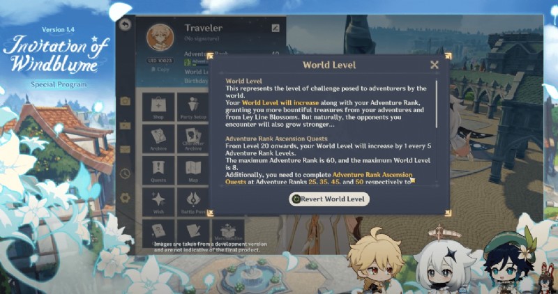 1.4 Genshin Impact の後 3 月 17 日のアップデートでは、メイン メニューからワールド レベルを手動で下げるオプションが追加されます。メニューが開いたら、現在のワールド レベルの横にある [i] アイコンをクリックします。ワールド レベルが何を表しているか、最大ワールド レベル (8)、およびワールド レベルがゲームプレイ体験にどのように影響するかについて知らなかった可能性のあるその他の情報を詳述するテキスト ボックスがポップアップ表示されます。