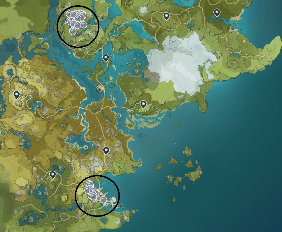 Glaze Lily は Liyue の野生地域に位置することができますが、主に Dawn Winery のかなり西に位置する Qingce 村の北に多く見られます。 Qingce 村自体、主にその北西の角にいくつかあります。大部分は川を挟んで北側にあります。また、天横山のすぐ左にある麗月港にも大量に見られます。麗月港をまだ見つけていなくても、Qiongji 河口の南にあるので心配はいりません。