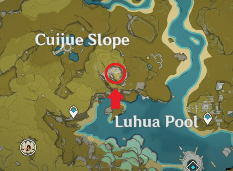 敵の 1 人が走り書きのメモを残し、「Cuijue 坂の最高峰」 に案内します。 下の世界地図に示されているこのピークには、ランドマークとして機能する背の高い葉のない木があります。